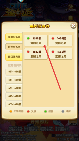 2、選擇自己喜歡的服務(wù)器,例如服務(wù)器列表中的1689服武器之果,進入角色創(chuàng)建頁面。