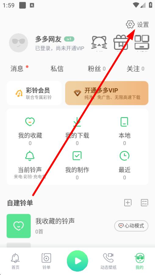 1、打開(kāi)鈴聲多多App,點(diǎn)擊界面右下角我的進(jìn)入個(gè)人中心頁(yè)面。