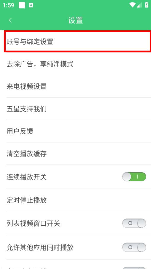3、在設(shè)置界面里找到,點(diǎn)擊賬號(hào)與綁定設(shè)置選項(xiàng)。