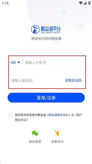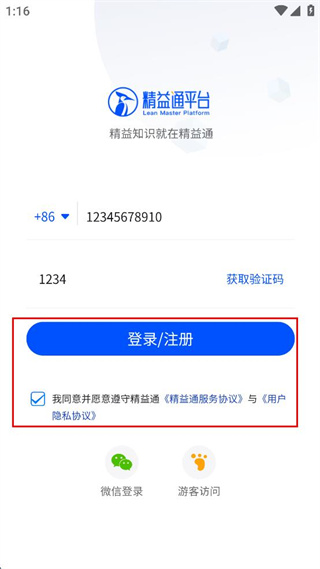 4、勾選我同意服務(wù)協(xié)議與用戶隱私協(xié)議,點(diǎn)擊“登錄/注冊”按鈕完成登錄。