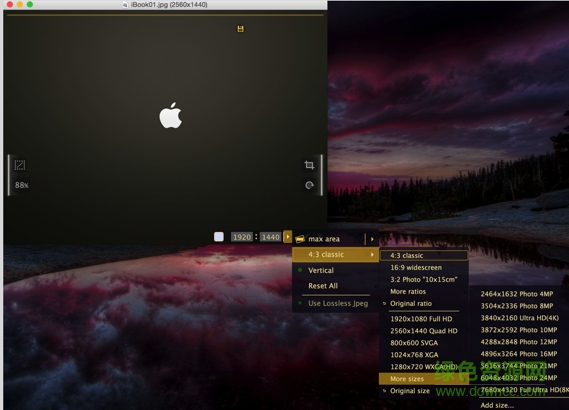 1.在看圖的時(shí)候,如果覺得某一張圖片過小或者過大或者圖片本身的比例看起來(lái)不是那么好,尤其在我們需要找到一張好的圖片去作為我們的mac的桌面背景的時(shí)候,但是圖片的比例和大小有所欠缺,那么利用Fragment能幫助我們解決這個(gè)問題。多種屏幕圖片比例以及圖片分辨率可以供我們選擇。