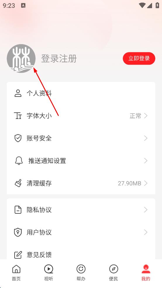 2、在個人頁面,點擊登錄注冊區(qū)域,進入登錄界面。