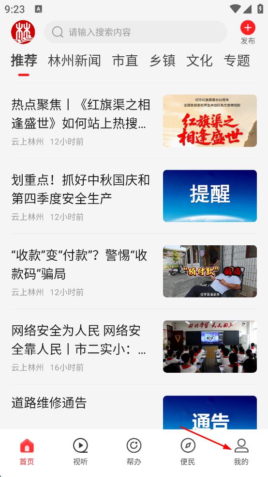 1、進入云上林州軟件首頁,點擊右下角我的選項,進入個人頁面。