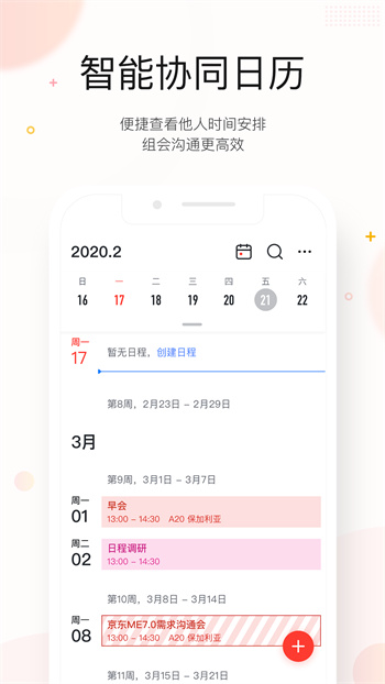 【日程】開放式日程管理平臺,提供員工所有日常會議、項目的日程安排,快捷地進行時間管理和協(xié)同辦公。