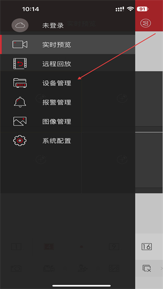 1、打開ivms4500APP,在首頁左上點擊功能圖標。