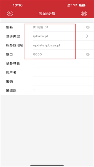 5、在添加設(shè)備的頁面內(nèi),輸入設(shè)備信息后可添加成功。
