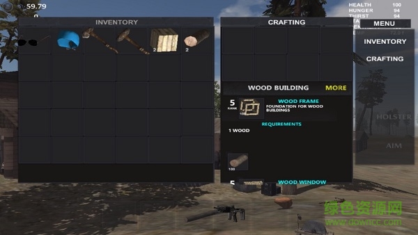 玩家在游戲中可以使用槍械,所以玩家之間的戰(zhàn)斗還是很激烈。在收集資源的時候往往要留意四周是否有敵人,否則被人偷襲就慘了。收集的原材料還可以進行合成,因此一些必備的道具都是通過合成得到。玩家最好是能夠先合成那些火把、篝火等必備的道具。
