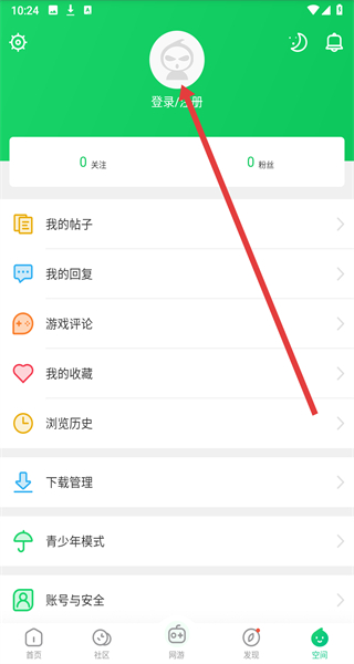 1、可以在我的空間頁面中,點(diǎn)擊上方頭像,進(jìn)行登錄操作。