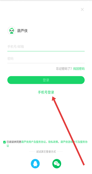 2、在進(jìn)入登錄頁面后,可以點(diǎn)擊手機(jī)號(hào)登錄按鈕,切換使用驗(yàn)證碼形式進(jìn)行登錄。