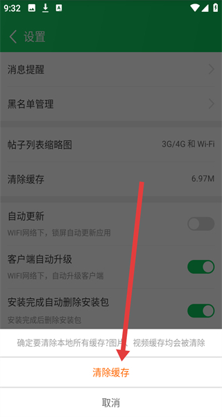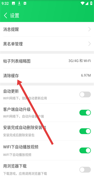 3、在進(jìn)入到設(shè)置頁面中,可以點(diǎn)擊清除緩存選項(xiàng),進(jìn)行清除操作。
