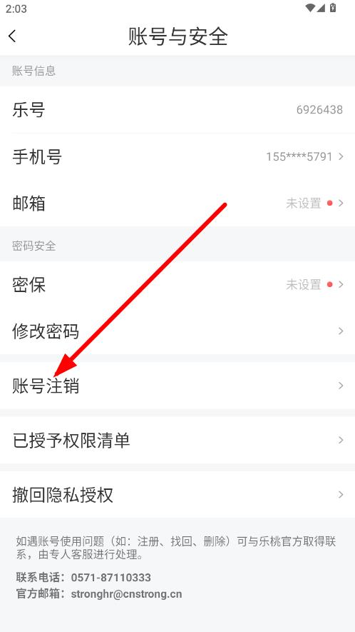 4、進(jìn)入賬號(hào)與安全界面后,點(diǎn)擊賬號(hào)注銷。