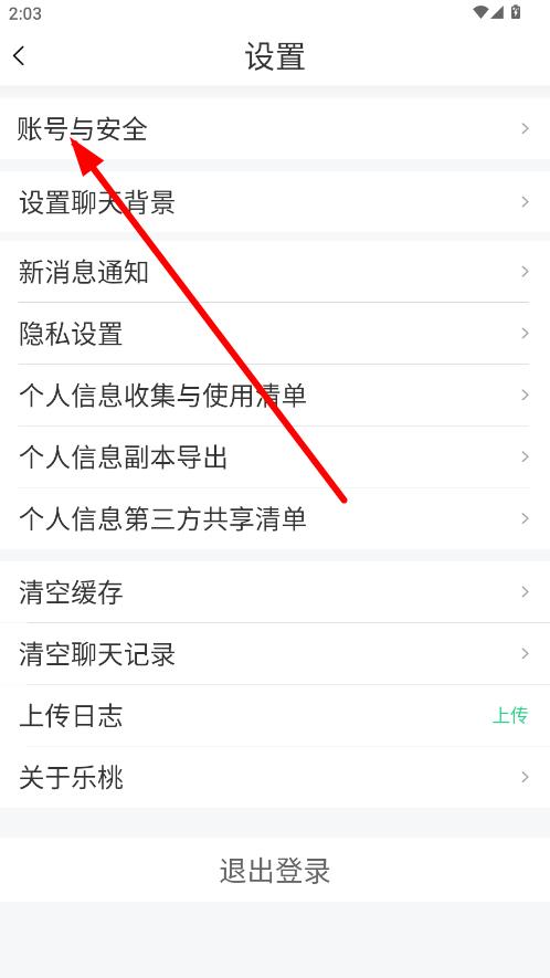 3、在設(shè)置頁(yè)面,點(diǎn)擊賬號(hào)與安全選項(xiàng)。
