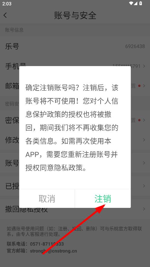 5、在彈出的確認(rèn)提示框中,點(diǎn)擊注銷,按照提示完成后續(xù)操作即可注銷賬號(hào)。