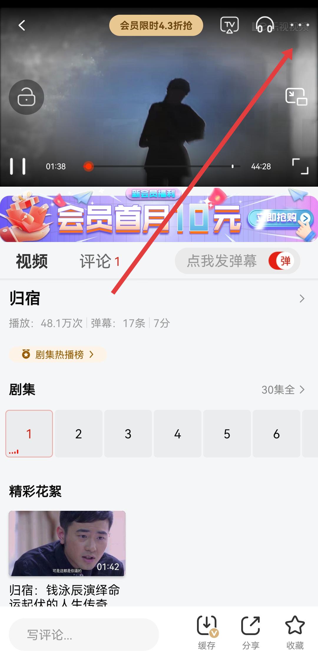 1、打開樂視視頻APP,需要進(jìn)入目標(biāo)視頻的播放界面,點擊右上角的三點圖標(biāo)。