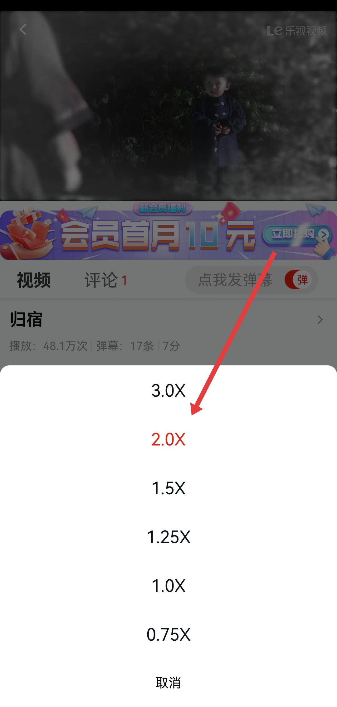 3、在倍速選擇的列表里,需要點擊2.0X,就能將視頻設(shè)置為2倍速播放。