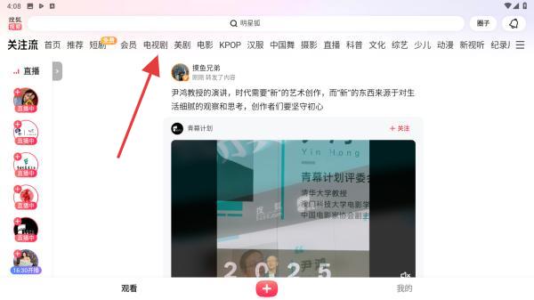 1、打開APP,用戶需在首頁(yè)頂部導(dǎo)航欄,找到并點(diǎn)擊電視劇標(biāo)簽。