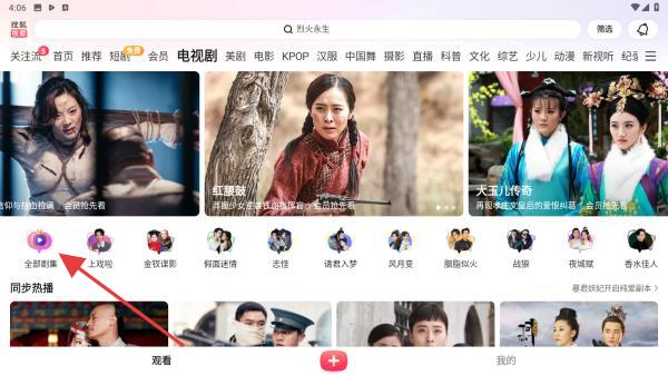 2、進(jìn)入電視劇頻道后,熱門播放劇集下會(huì)顯示全部劇集的字眼,點(diǎn)擊即可。