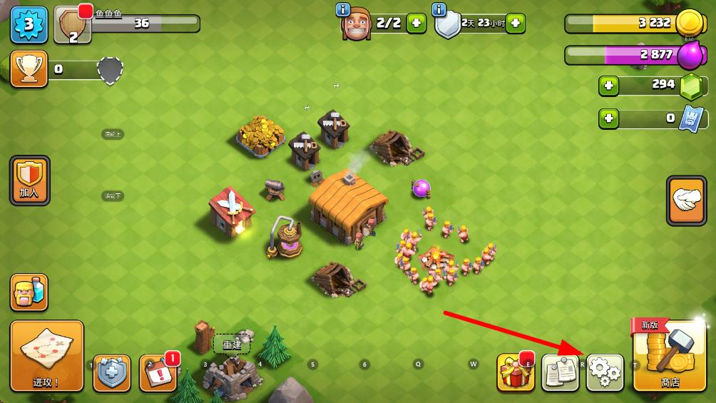 1、進(jìn)入部落沖突游戲主界面,點(diǎn)擊屏幕右下角的設(shè)置圖標(biāo),打開(kāi)設(shè)置頁(yè)面。