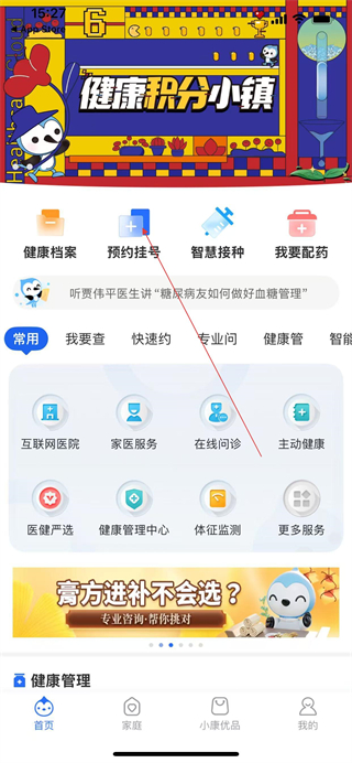 1、在健康云的首頁,點擊預約掛號,進入預約掛號頁面。