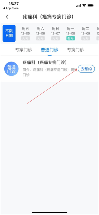 4、在門診選擇頁面點擊去預約,進入醫(yī)生排班頁面。
