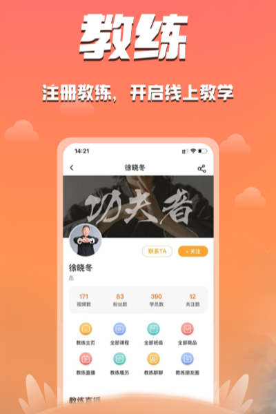 功夫者,是功夫、體育教學(xué)整合與分享的平臺(tái)。功夫者一直以“上武得道,平天下;中武入喆,安身心;下武精技,防侵害”作為自己的教學(xué)宗旨。在這里,你能找到任何你想學(xué)習(xí)的國(guó)內(nèi)外功夫教學(xué)以及體育運(yùn)動(dòng)相關(guān)教學(xué),并能直接與教練進(jìn)行私信、群聊、直播互動(dòng)。在這里,你能和其他功夫、體育愛(ài)好者一起交流努力,然后一同分享自己訓(xùn)練的汗水與成功。悠悠千年,傳承國(guó)粹,功夫練體,武者修心,功夫者期待你的加入,與你共修功夫之心。