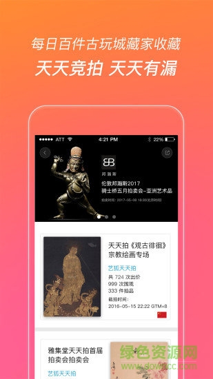 藝狐全球拍賣在線平臺是一款專門為每一位用戶提供拍賣功能的手機軟件,用戶下載安裝之后可以通過軟件了解到最新的拍賣信息,全球好貨等你來競拍,每一件商品挑選自全球優(yōu)質(zhì)好貨,需要的用戶快來綠色資源網(wǎng)下載吧!