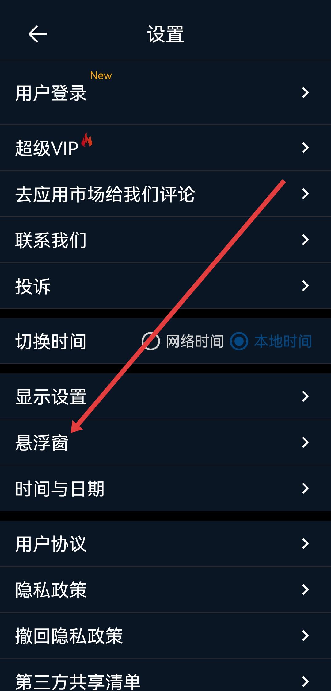 2、在設(shè)置的頁(yè)面,需要點(diǎn)擊懸浮窗的選項(xiàng),進(jìn)入懸浮窗設(shè)置界面。