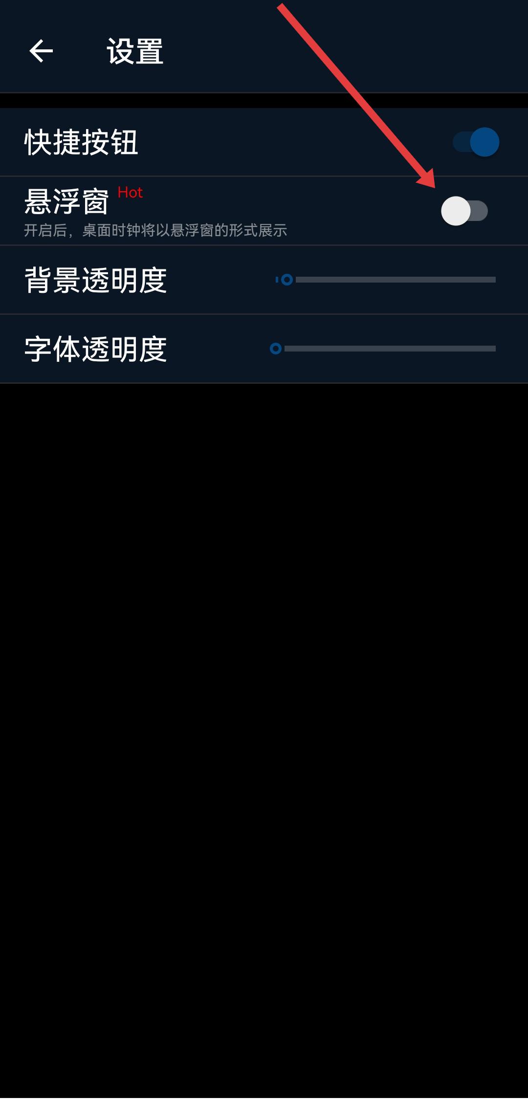 3、在懸浮窗設(shè)置界面,點(diǎn)擊懸浮窗右側(cè)的開(kāi)關(guān)按鈕,將灰色關(guān)閉狀態(tài)切換。