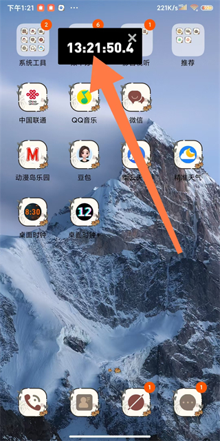 4、設(shè)置完成后,桌面即可顯示懸浮時(shí)鐘,完成懸浮窗開(kāi)啟操作。