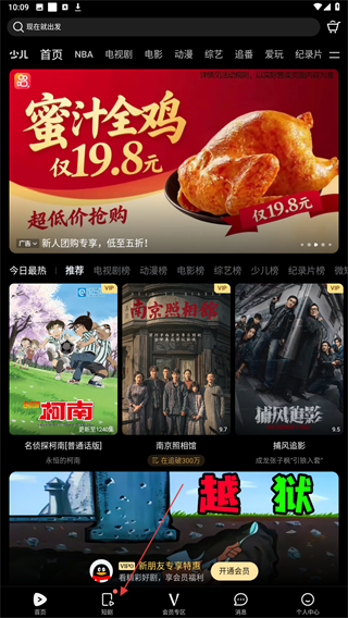 1、打開(kāi)騰訊視頻APP,進(jìn)入時(shí)點(diǎn)擊底部短劇的標(biāo)簽。