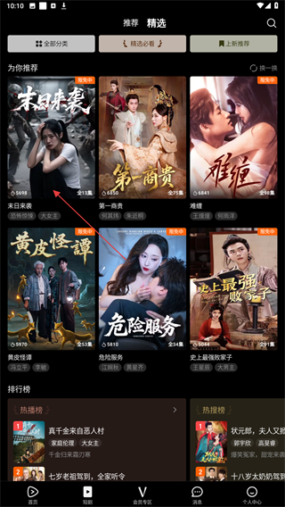 2、進(jìn)入短劇精選的頁(yè)面內(nèi),選擇并點(diǎn)擊要播放的短劇。
