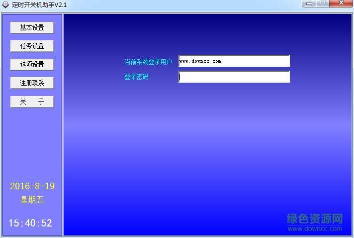 遠(yuǎn)大定時開關(guān)機(jī)助手是一款能夠隨著你的心情和習(xí)慣設(shè)置電腦開機(jī)和關(guān)機(jī)的一款工具,多種功能將你的設(shè)置細(xì)分化更加貼近你的喜好,需要的朋友就來綠色資源網(wǎng)下載吧!