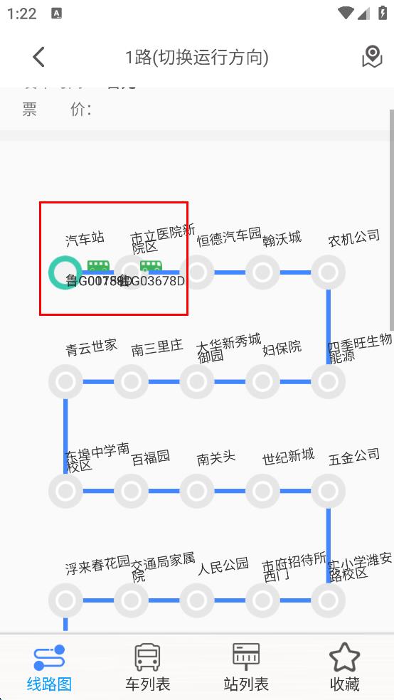 4.在“輸入線路”框中輸入公交線路,或者選擇想要查詢的線路,在這條線路上所有站點和正在運行的公交車狀態(tài)一目了然。