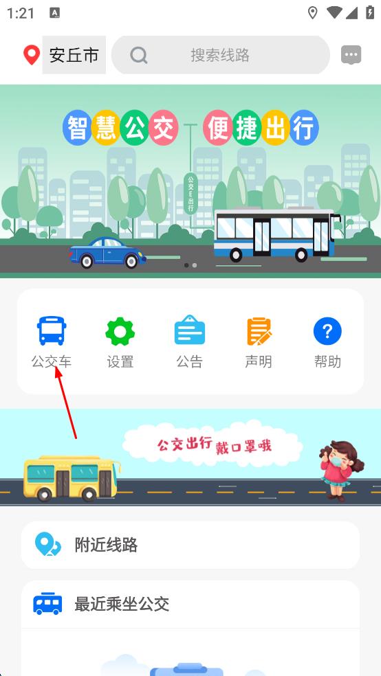 2、在主界面,點擊“公交車”選項,進入公交路線選擇頁面。