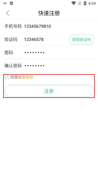 3、勾選同意服務(wù)協(xié)議選項(xiàng),確認(rèn)所有信息填寫無誤后,點(diǎn)擊注冊按鈕完成注冊操作。