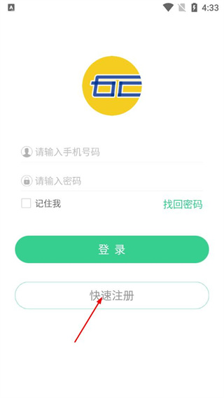 1、進(jìn)入該軟件登錄頁面,找到快速注冊按鈕,點(diǎn)擊該按鈕進(jìn)入快速注冊界面。