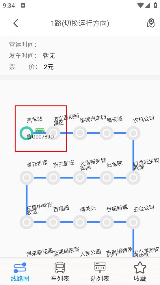 4、在1路公交詳情頁面,可查看該線路的營運(yùn)時(shí)間、票價(jià)等信息,同時(shí)也能看到線路圖,了解各站點(diǎn)分布情況。