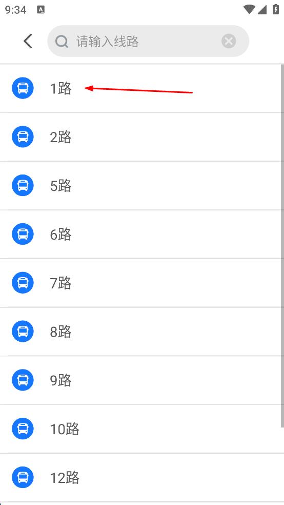 3、在線路搜索頁面,從顯示的公交路線列表中,找到想要查詢的1路公交路線并點(diǎn)擊,進(jìn)入1路公交的詳情頁面。