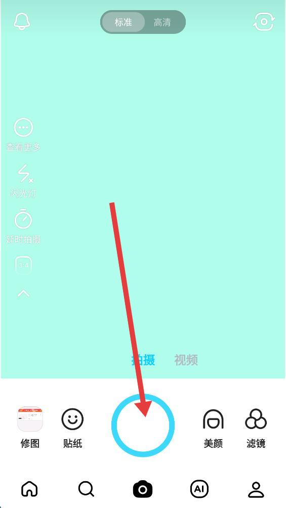 1、打開snow相機(jī),點(diǎn)擊拍攝頁面的拍攝按鈕進(jìn)行拍攝。