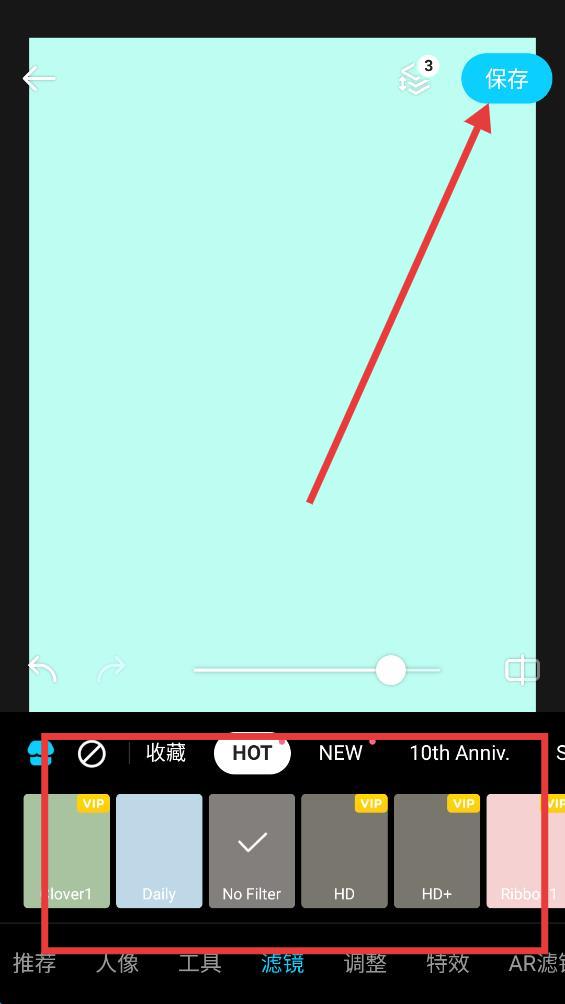 4、選擇喜歡的濾鏡后,點(diǎn)擊保存按鈕,即可為圖片添加濾鏡。