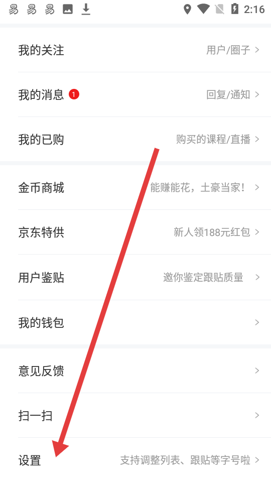 1、打開網(wǎng)易新聞極速版,進入我的頁面,下滑找到并點擊設置選項。