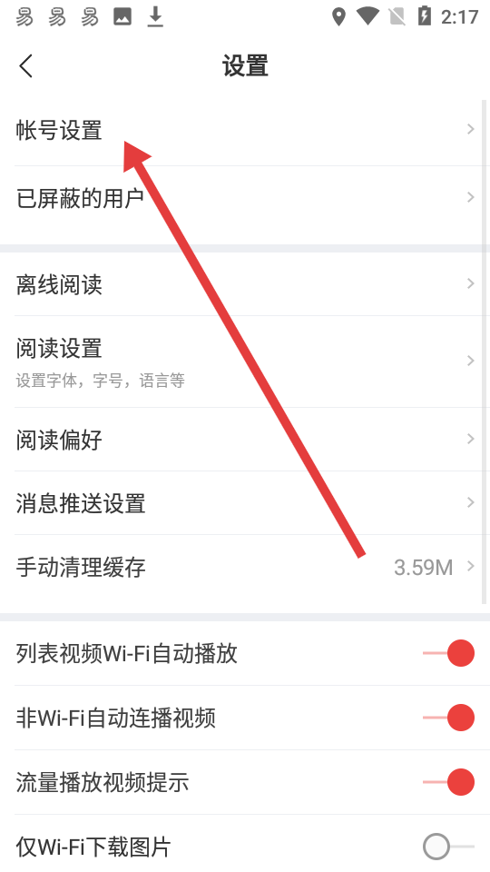 2、在設置頁面中,點擊帳號設置進入帳號相關設置界面。