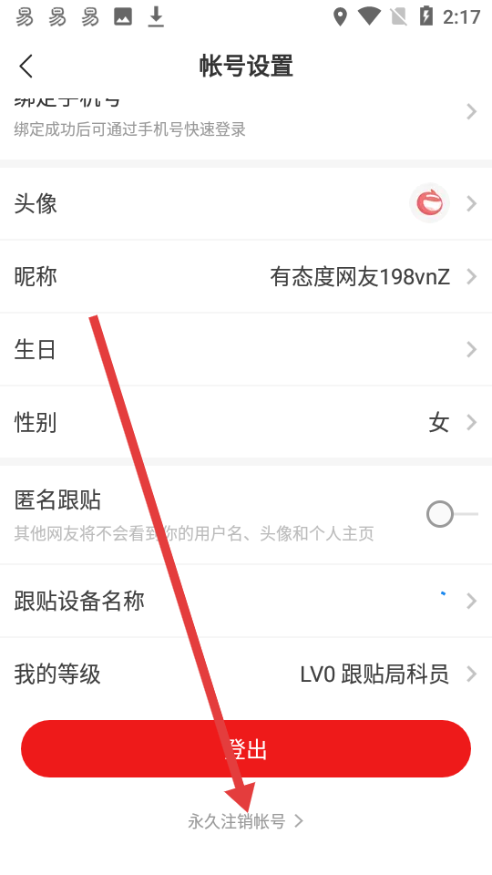 3、在帳號設置頁面底部,點擊永久注銷帳號,按照提示完成后續(xù)操作即可注銷賬號。