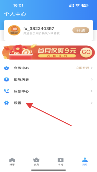 2、在個(gè)人中心頁面,點(diǎn)擊設(shè)置的功能按鈕。