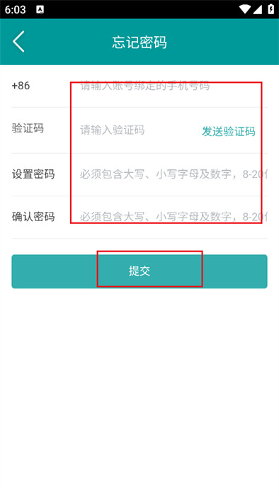 3、緊接著,這里需要你重新填寫自己的手機號登信息,并點擊提交,即可完成重置密碼;