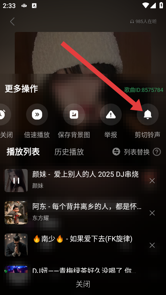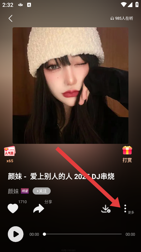 2、在歌曲播放界面,點(diǎn)擊更多的按鈕,調(diào)出更多操作的選項(xiàng)。