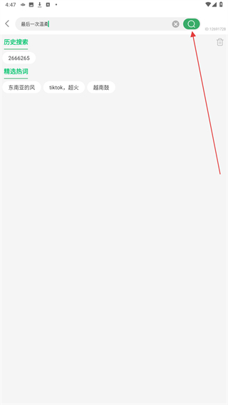 2、在輸入框內(nèi)輸入歌曲后,點(diǎn)擊右側(cè)搜素的功能按鈕。