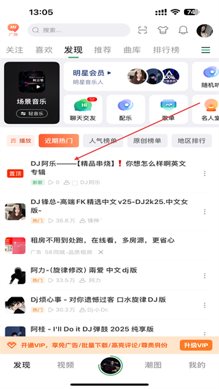 打開軟件,在發(fā)現(xiàn)界面,為你推薦近期熱門歌曲,在這里你可以分類查找,排行榜,專輯等內(nèi)容的呦·