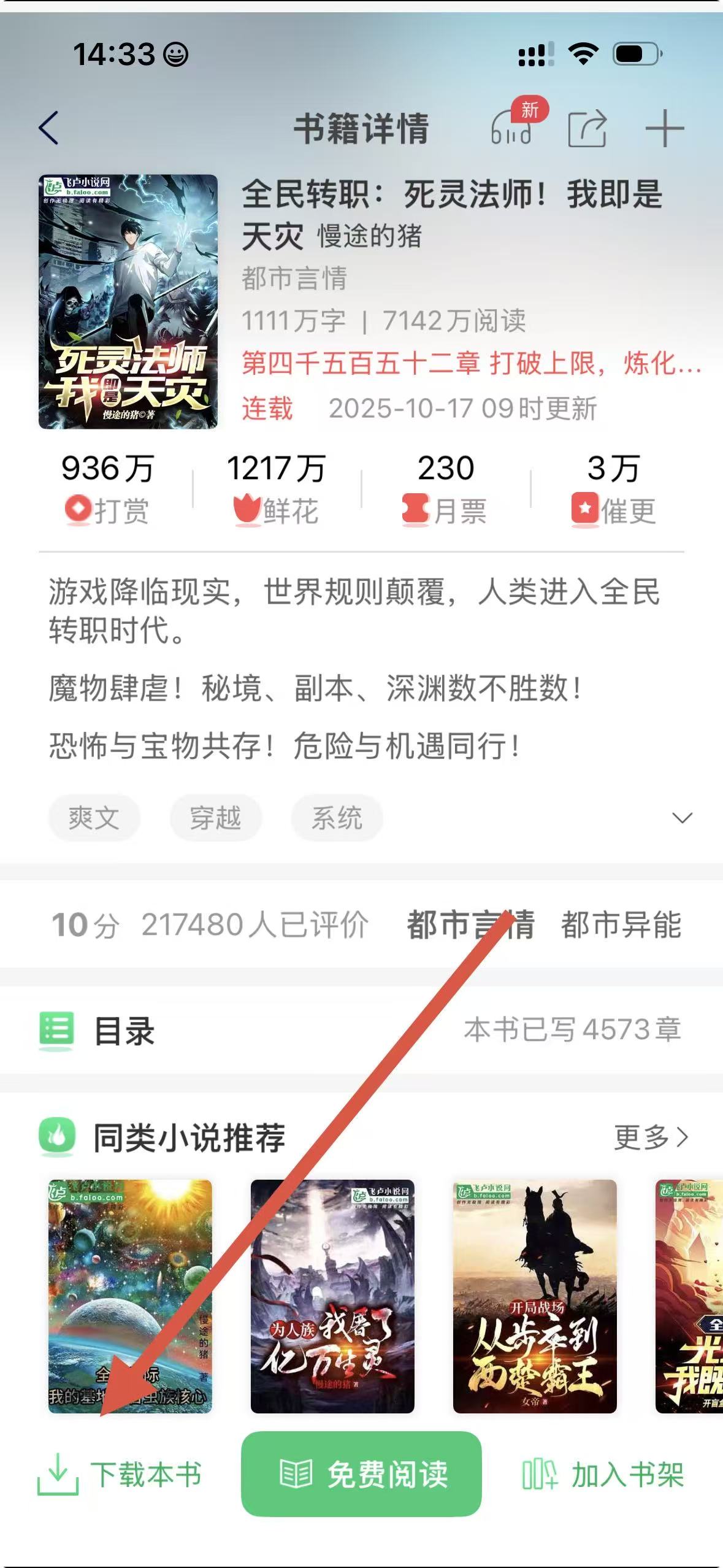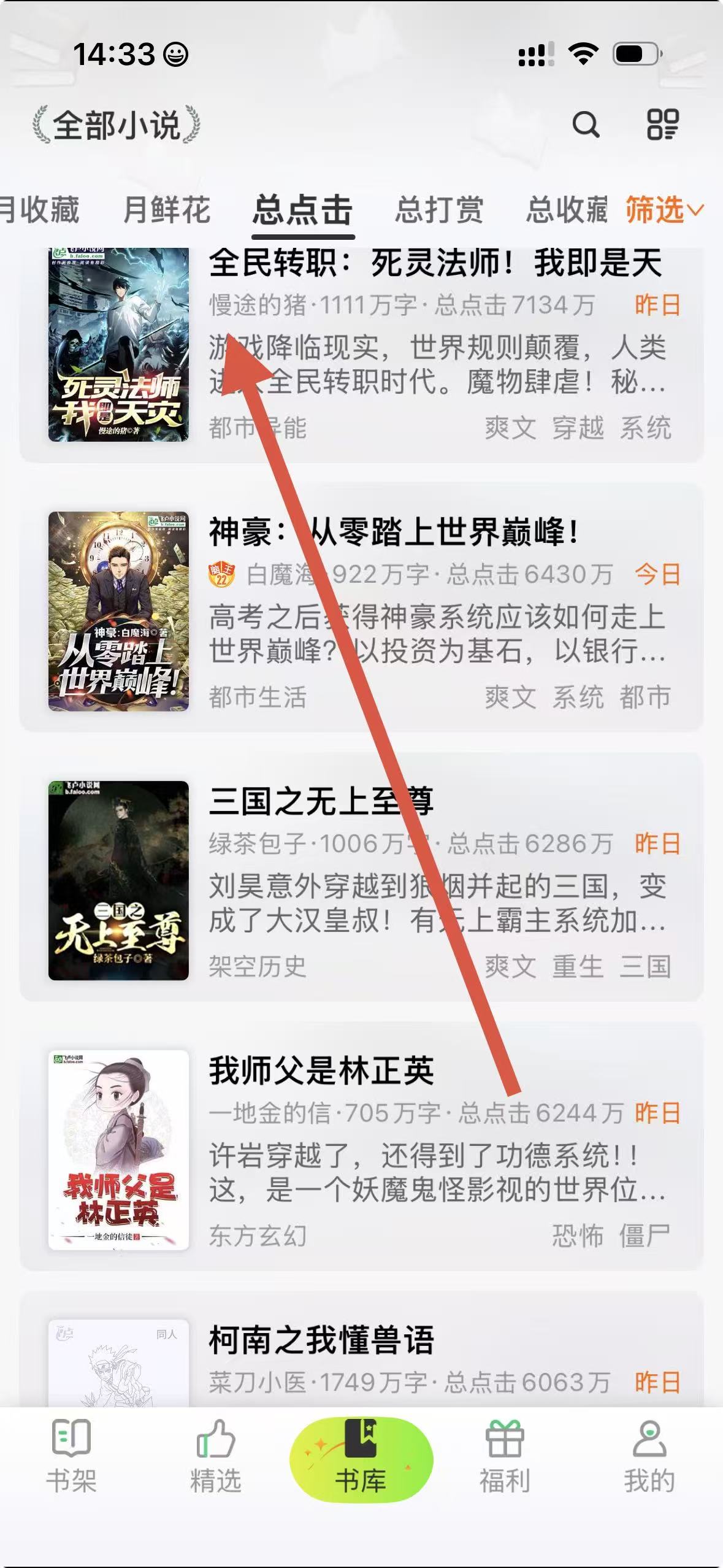 2、在書庫頁面,找到想下載的小說并點(diǎn)擊進(jìn)入書籍詳情頁。