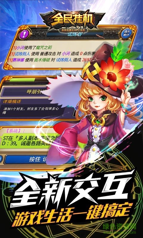 360版全民掛機(jī)手游是一款玩法奇特,擁有精致畫風(fēng),品質(zhì)堪比端游大作的手機(jī)掛機(jī)游戲,游戲中玩家只需要進(jìn)行掛機(jī),每天就能獲得大量的金幣、經(jīng)驗(yàn)等獎(jiǎng)勵(lì),在掛機(jī)游戲的同時(shí)還能與好友一起互動(dòng),實(shí)現(xiàn)了游戲聊天兩不誤的效果??靵砭G色資源網(wǎng)下載吧!